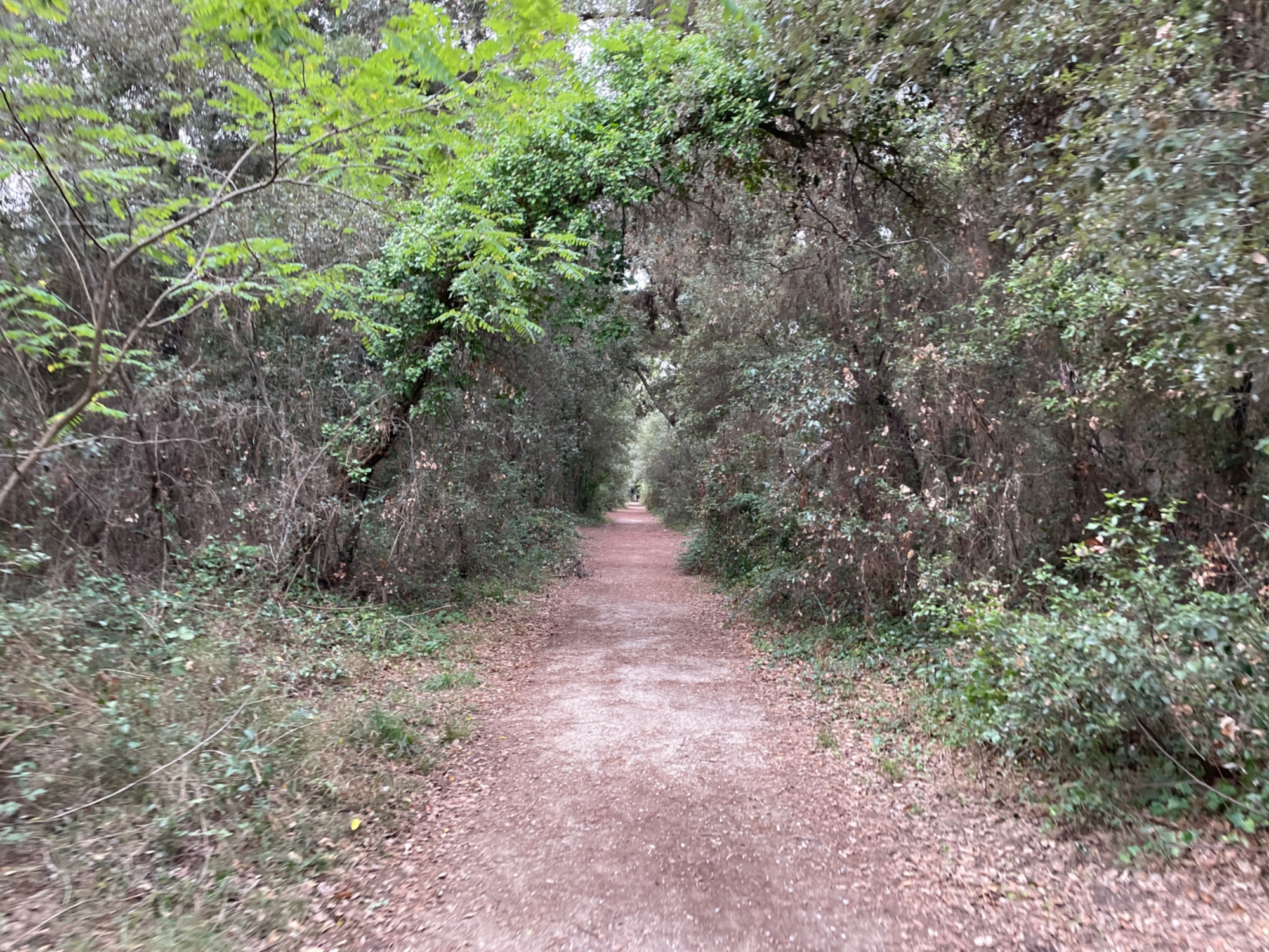 Nous passons le port canal et continuons tout droit pour entrer dans la pinède Pineta della Lecciona, en suivant le Viale dei Tigli. Si nous préférons continuer sur l'asphalte, nous allons tout droit, sinon, au premier feu de signalisation, nous tournons à droite sur un sentier et peu après à gauche, pour prendre un beau chemin de terre à travers la pinède de la Lecciona, une oasis naturelle très fascinante.