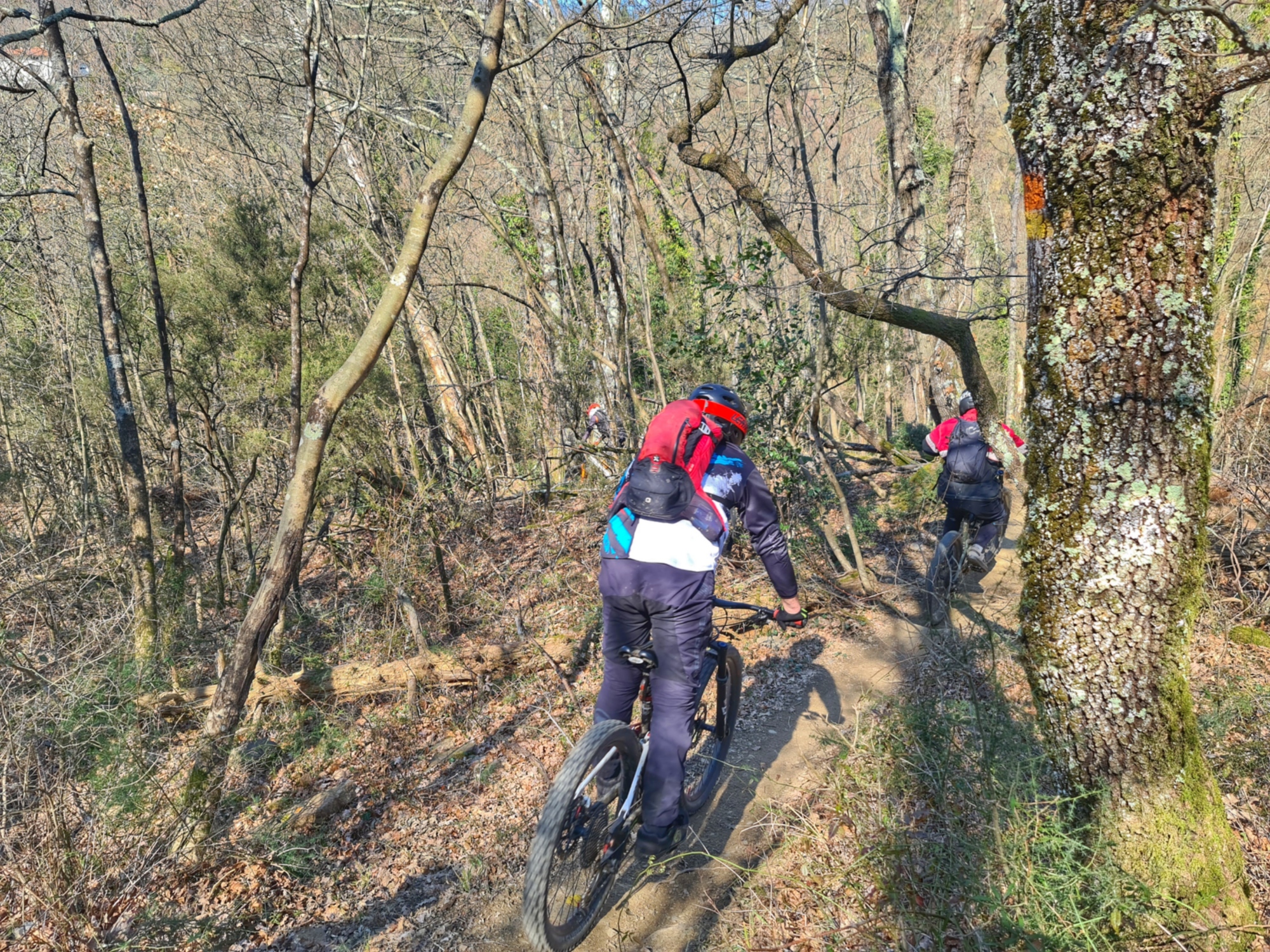 Une fois arrivés aux Faggi di Javello, le parcours commence à être descendant, sinueux et accidenté jusqu'au col de Cavallaie, où un virage à gauche en direction de Montemurlo vous fera remonter la vallée après une longue descente non technique et très pittoresque.