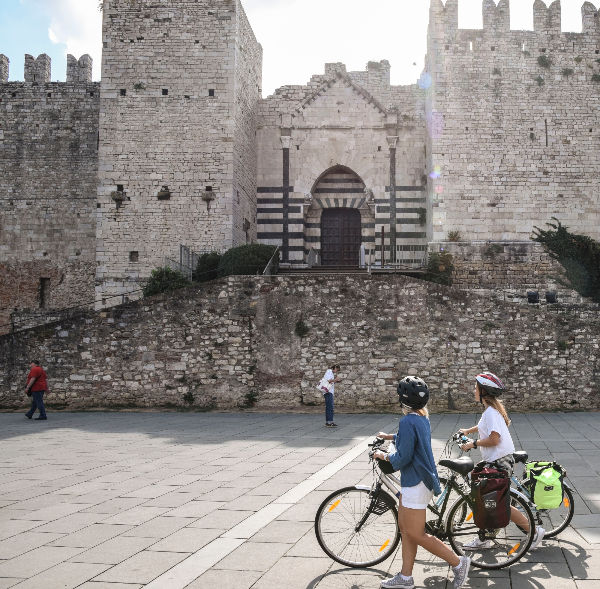 Si vous arrivez en train avec votre bicyclette, vous pourrez immédiatement vous rendre dans le centre-ville et vous balader à vélo entre les églises, les édifices et les tours médiévales pour rejoindre en quelques minutes la Cathédrale, gardienne des fresques de Filippo Lippi, avec sa fascinante chaire de Donatello et les principales places de la ville. Prenez le temps de faire une petite halte œnogastronomique et régalez-vous avec deux spécialités incontournables : les pêches de Prato et les biscuits aux amandes. Après cette pause gourmande, vous aurez plus d’énergie à dédier au trajet. Lorsque vous arriverez devant le Château de l'Empereur, vous resterez bouche bée face à sa grandeur ! Vous arriverez ensuite au Musée du textile et à la place San Marco, où la singulière sculpture d'art d'Henry Moore, Forme carrée avec entaille, vous permettra d'utiliser toute votre imagination.