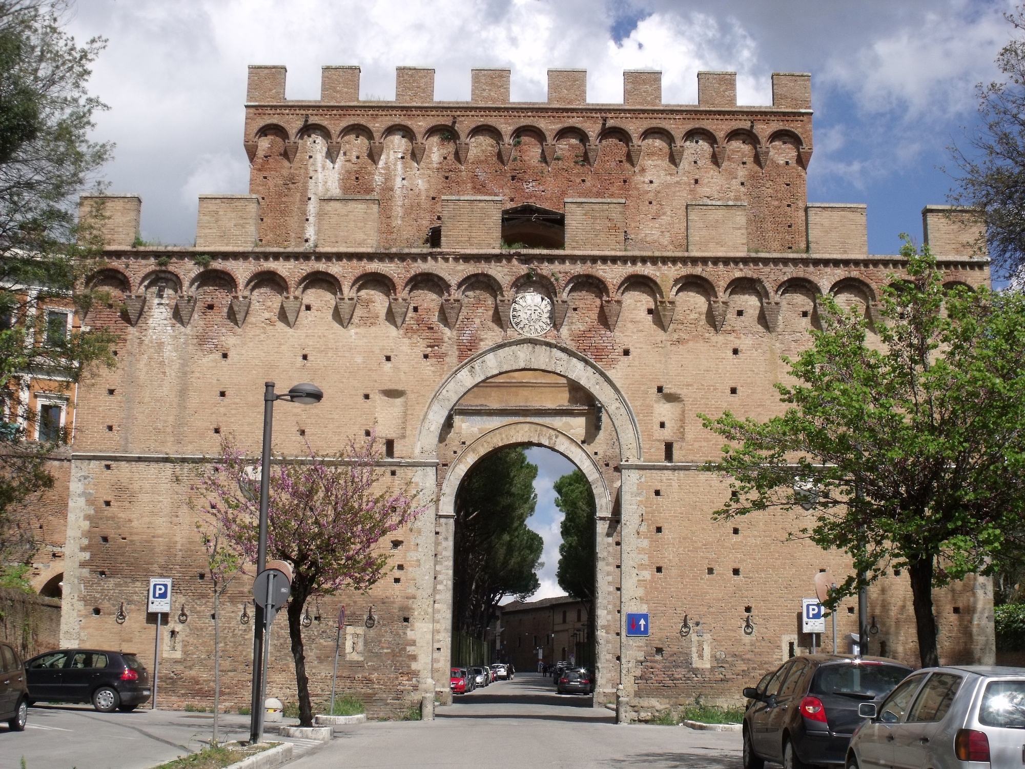 En quittant la Piazza del Campo, continuez vers l'est pour trouver immédiatement les Loggias du Pape, construit en 1462 à côté de l'église de San Martino, avec sa façade baroque typique. En poursuivant le parcours, vous atteindrez la Porta Romana, construite en 1327, par laquelle vous vous retrouverez sur l'ancienne Via Cassia sur une petite partie de la voie.