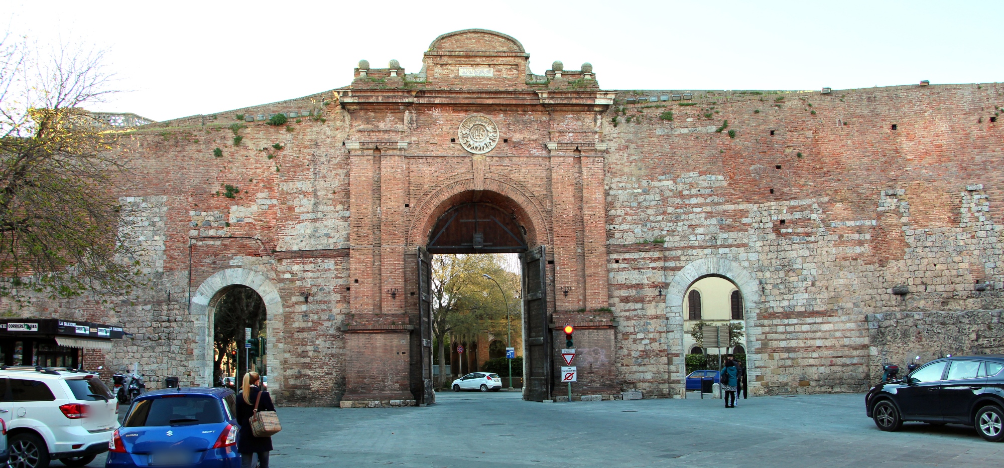 En remontant une pente douce, vous sortirez à nouveau de l'enceinte de la ville par la Barriera de San Lorenzo et trouverez la Porta Camollia, l'entrée au nord de la ville, surmontée de la célèbre inscription « Cor magis tibi Sena pandit » (Sienne t'ouvre son cœur plus encore que la porte que tu franchis).