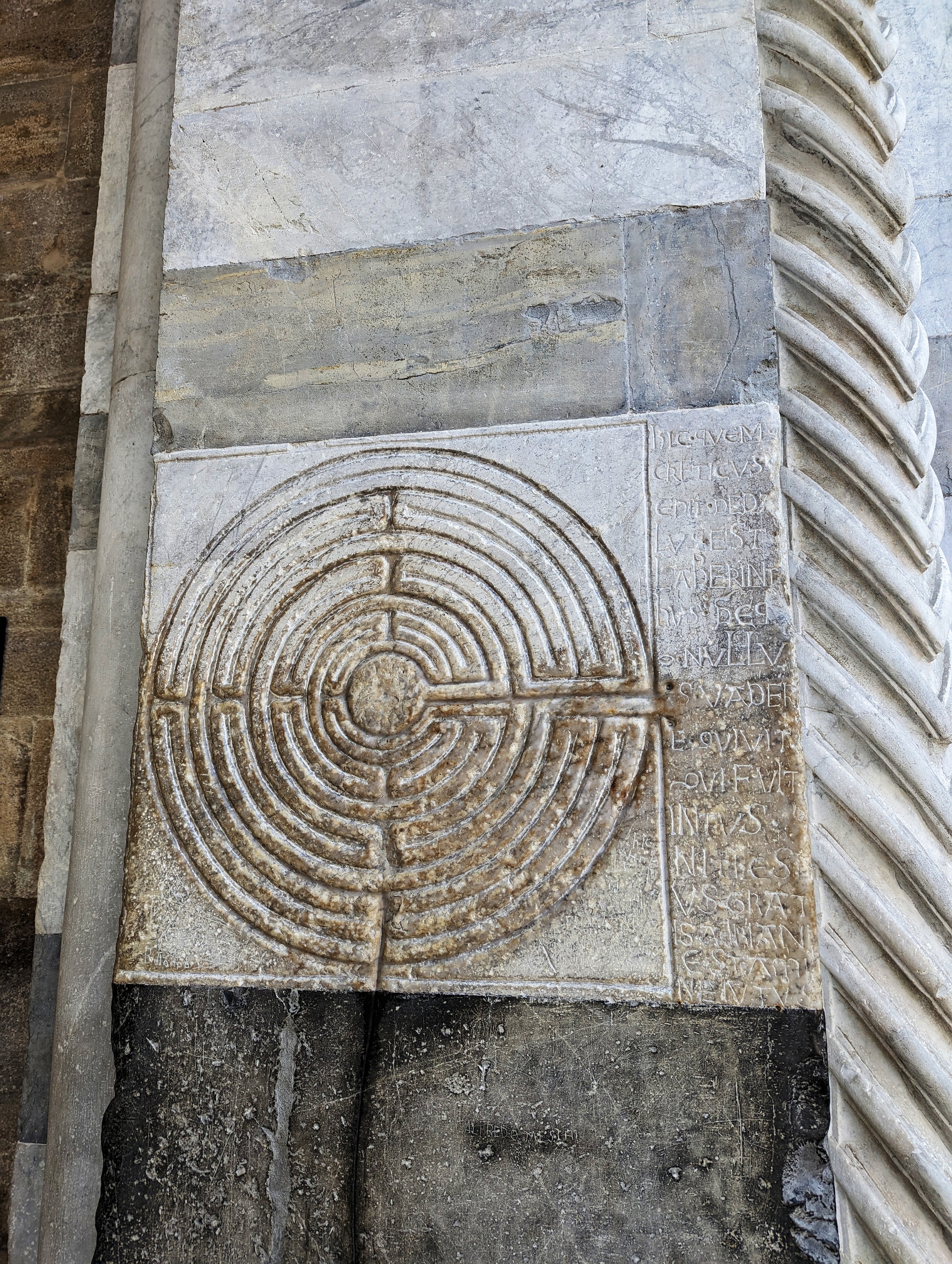 Mais pourquoi sculpter un symbole rappelant le paganisme sur le porche d'un bâtiment chrétien ? Ce n'est pas un cas unique : le labyrinthe a été représenté à d'autres reprises à l'intérieur d'églises européennes, notamment sur le sol de la cathédrale de Chartres, en France. Le labyrinthe est considéré comme une métaphore du chemin du christianisme, selon lequel le seul moyen pour l'homme d'arriver au salut est de suivre la foi, de la même manière que Thésée a suivi le fil d'Ariane pour sortir de l'obscurité du labyrinthe. Cependant, même après de nombreux siècles, sa signification réelle reste énigmatique.