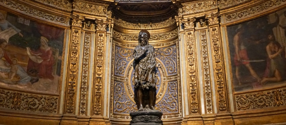 La costruzione della cappella dall’Operaio del Duomo Alberto Aringhieri fu iniziata nel 1482 per custodire la più insigne reliquia della Cattedrale, donata nel 1464 da Papa Pio II Piccolomini all'interno di un bellissimo reliquiario in argento: il braccio destro di San Giovanni Battista, dal quale Gesù ricevette il battesimo nelle acque del fiume Giordano. Gli arredi e la decorazione dell’ambiente ruotano pertanto attorno alla figura di Giovanni, ultimo Profeta e Precursore di Cristo, in quanto mandato da Dio a preparare gli Ebrei alla venuta del Messia. La cappella è dominata dalla grande statua in bronzo raffigurante San Giovanni Battista, capolavoro della tarda attività di Donatello, che la realizzò a Firenze entro il 1457; sulle pareti si snoda, invece, la Biografia di san Giovanni Battista, dipinta dal Pinturicchio tra il 1504 e il 1506. L'insigne reliquia era appartenuta a Tommaso Paleologo, despota di Morea e fratello carnale dell'Imperatore d'Oriente. L'esposizione del Braccio di san Giovanni avviene circa cinque giorni prima della festa, che ricorre il 24 giugno. In quest'occasione la reliquia viene traslata dalla stanzetta che si trova dietro la Cappella di San Giovanni all'altare maggiore. La reliquia è conservata in una teca la cui apertura è possibile solo attraverso l'inserimento di 3 chiavi: la prima chiave è posseduta dal Comune di Siena, la seconda dalla Sagrestia del Duomo e la terza dall'Opera del Duomo.