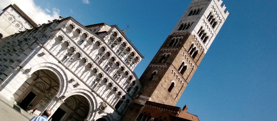 Il Duomo di Lucca, intitolato a San Martino, secondo la tradizione fu edificato per volontà di San Frediano, il vescovo di Lucca, morto nel 588. La facciata, ispirata a quella del Duomo di Pisa, è un capolavoro del romanico lucchese, con i marmi policromi, il grande portico affacciato sulla piazza con le tre arcate e gli splendidi bassorilievi. Era sotto questo porticato che si trovavano i banchi dei cambiavalute che facevano affari con i pellegrini della Via Francigena. Anche il misterioso labirinto scolpito su uno dei pilastri può essere un simbolo di pellegrinaggio, oppure un’opera artistica legata ai templari, perché ricorda molto quello sul pavimento della Cattedrale di Chartres. L'interno a tre navate è un ambiente suggestivo, grazie alle sue forme gotiche, e conserva molte opere d’arte come la Madonna in trono con bambino e santi di Domenico Ghirlandaio e l’Ultima cena di Jacopo Tintoretto. La Cattedrale conserva anche il Volto Santo, un crocifisso di legno che secondo la tradizione fu realizzato da Nicodemo basandosi sul volto di Gesù, che è stato collocato in uno splendido tempietto del Quattrocento di Matteo Civitali.
