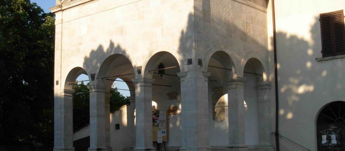Secondo la tradizione, la chiesa di San Marziale sarebbe stata costruita nel luogo dove sorgeva la tomba di Austricliniano, resuscitato da San Marziale di Limoges e divenuto patrono di Colle Val d'Elsa. L'ingresso, rialzato rispetto al piano stradale, è dotato di un loggiato risalente all'Ottocento dove è posto il busto in marmo di Giovan Battista Schmidt, un industriale boemo del vetro del 1800, che ha contribuito alla nascita dell'industria del vetro (e poi del cristallo), vanto di Colle Val d'Elsa. All'interno, sull'altare maggiore, una tela di scuola fiorentina del XVII secolo, opera di Giovan Pietro Benini, raffigurante San Marziale che compie il miracolo. Vi è poi un affresco, forse del Vecchietta, raffigurante la moltiplicazione dei pani e l'incontro di Gesù con Zaccheo. Alle pareti laterali un San Michele, forse del XVIII secolo e due statue di legno policromo, raffiguranti San Marziale e S. Antonio Abate.